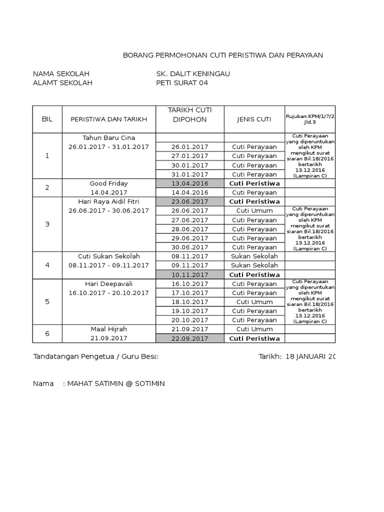 You have just read the article entitled Cuti Perayaan 2018 Kpm. Berikut merupakan jadual cuti perayaan 2017.